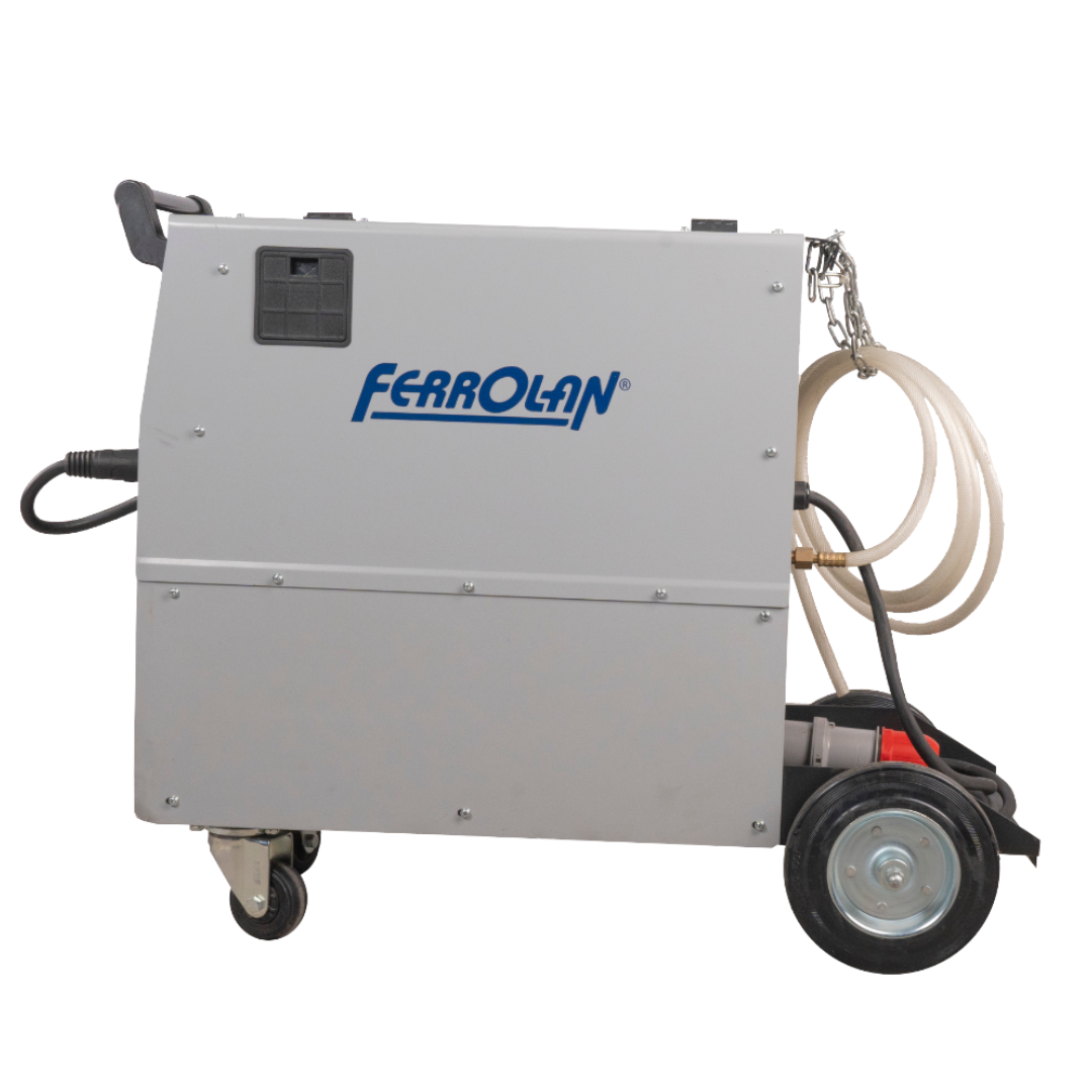 Modelo con alimentación de 380V, con conector 35-50 (13mm), con tren de tracción metálico y regulación de inductancia. Además, la Torcha Mig es universal, cuenta con euroconector.